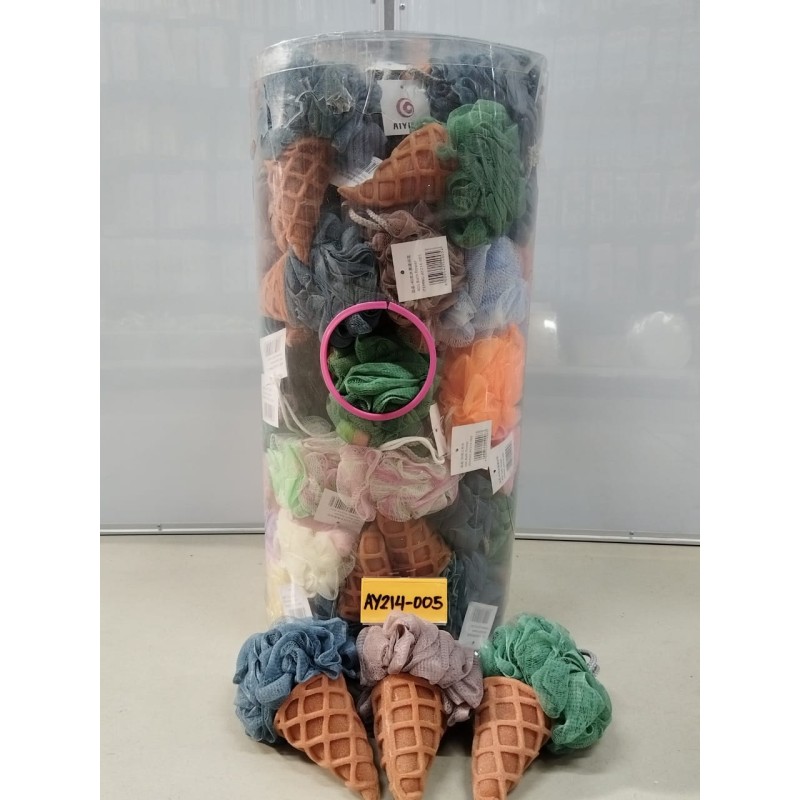 The image displays a bulk package of assorted bath sponges, also commonly known as loofahs or shower poufs. These products are typically made of durable mesh designed to create a rich lather with soap or shower gel.
