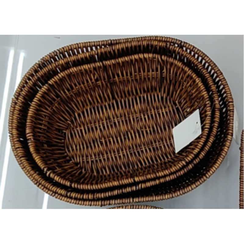 This is a set of three nested oval wicker baskets, possibly made of polypropylene fibers or natural willow material in a dark brown finish