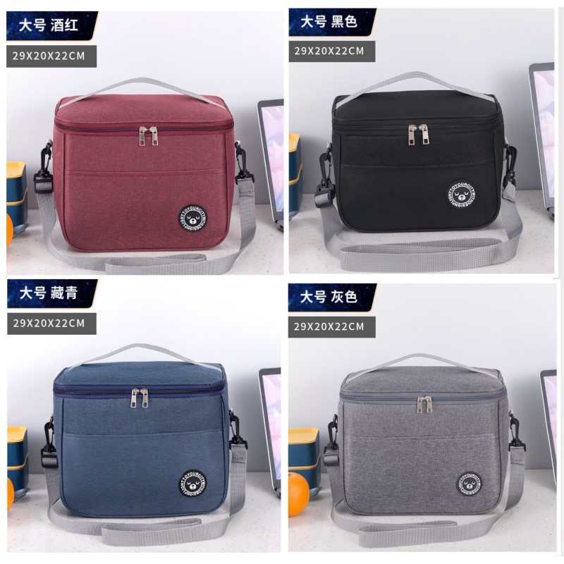 A portable insulated lunch cooler bag. The bag is designed to keep food and drinks at the desired temperature for several hours, making it suitable for work, school, picnics, or travel.