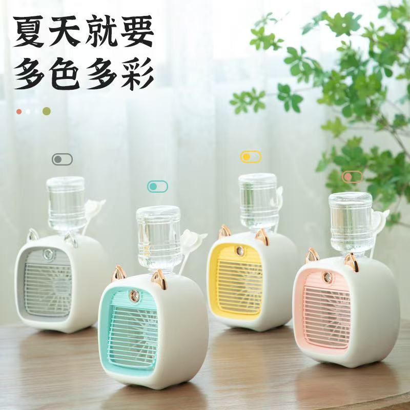 portable mini air conditioner fan which functions as an evaporative air cooler and humidifier.