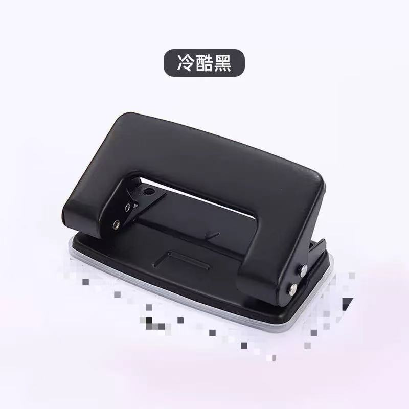 two-hole paper punch (also known as a hole puncher or paper puncher), which is an office tool used to create holes in sheets of paper so they can be filed in a binder or folder.