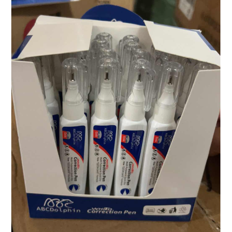The product is a white, opaque correction fluid pen used to cover up mistakes on documents.
