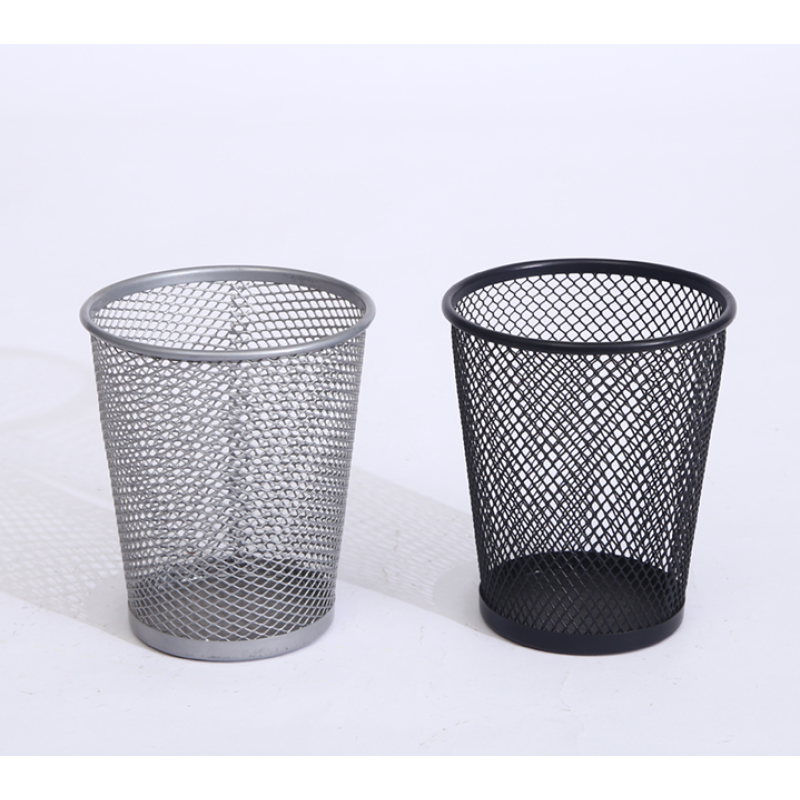 black metal mesh pen holders.
