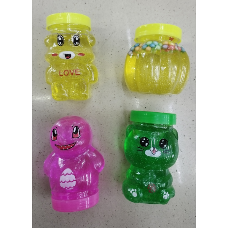 The clear containers showcase gradient colors and contain a foam ball inside.