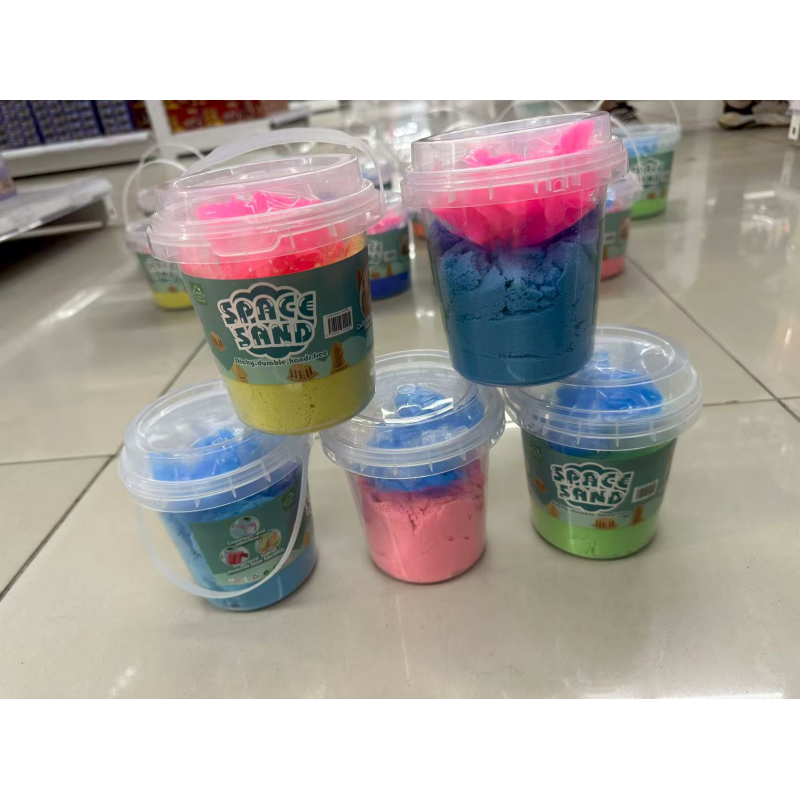Space Sand" or "Fluffy Play Sand," a type of sensory toy similar to kinetic or magic sand.