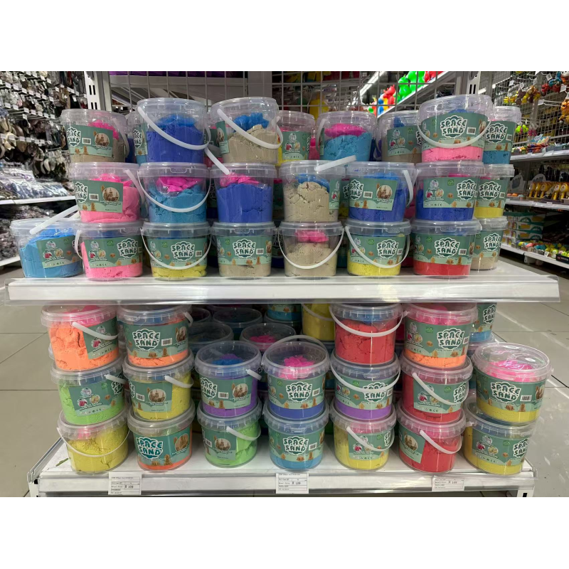 Space Sand" or "Fluffy Play Sand," a type of sensory toy similar to kinetic or magic sand.
