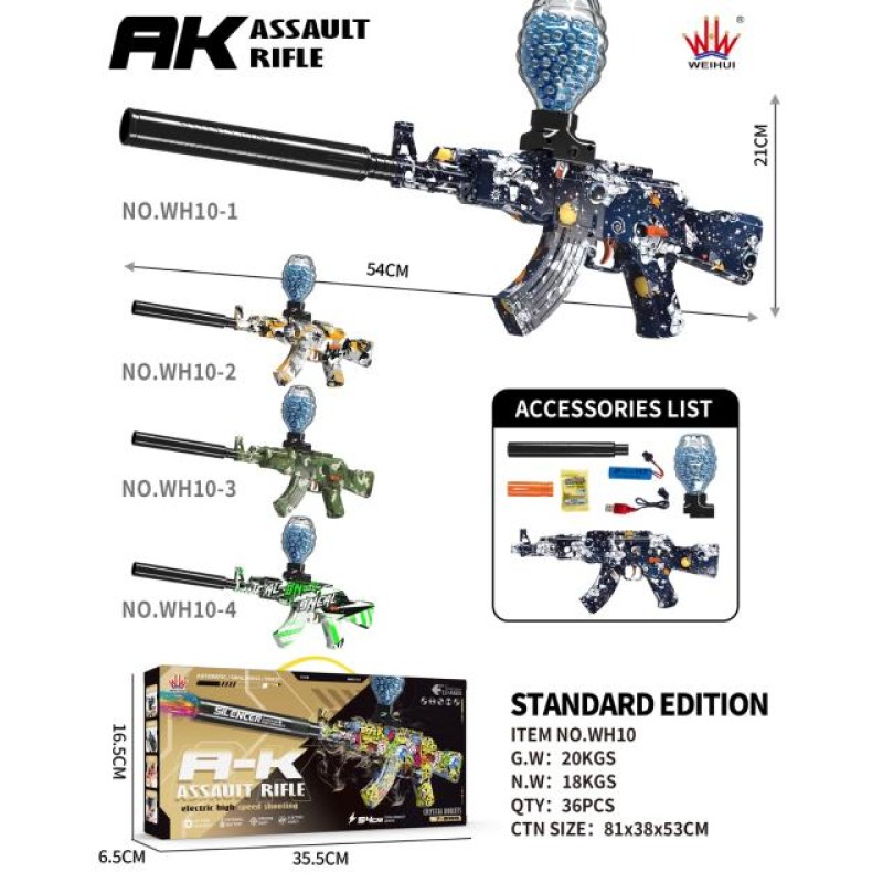Product Name: CC170-004 Water Bomb Gun WH10 (also referred to as "AK ASSAULT RIFLE" on the packaging in the image).
