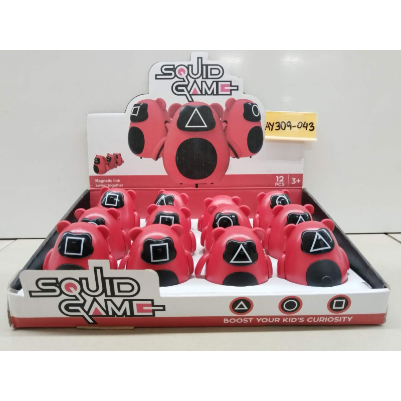 Each toy features the iconic masked guard design with a triangle, circle, or square symbol.