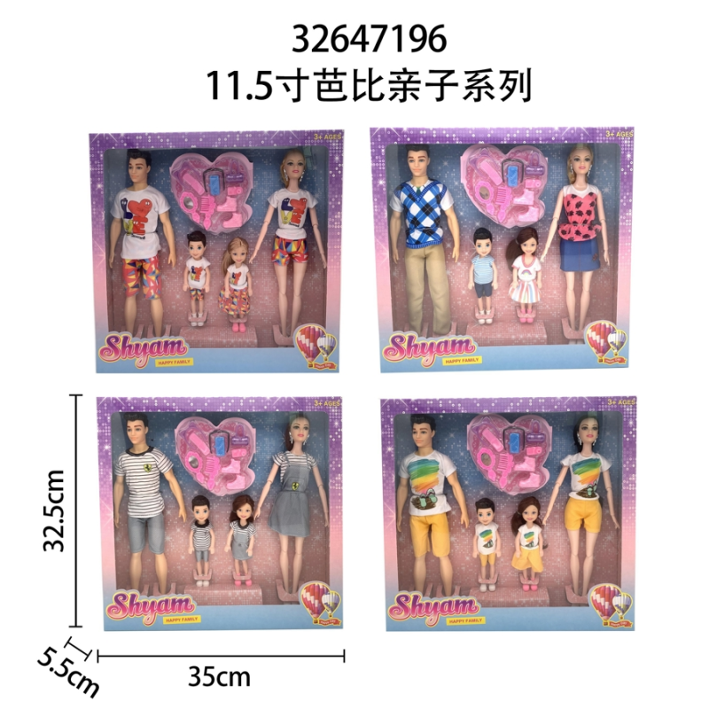 set of several dolls, including a "pregnant mom," a dad, and children, sometimes referred to as a "Happy Family" set.