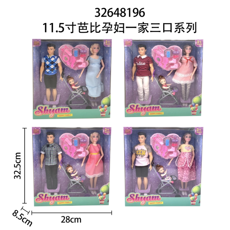 set of several dolls, including a "pregnant mom," a dad, and children, sometimes referred to as a "Happy Family" set.