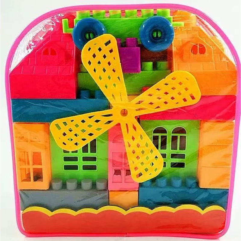 Plastic Building Blocks set. Designed for small hands and big ideas, these chunky, vibrant blocks easily snap together to create anything your child can dream of—from towering castles to a first-ever house with a working windmill.