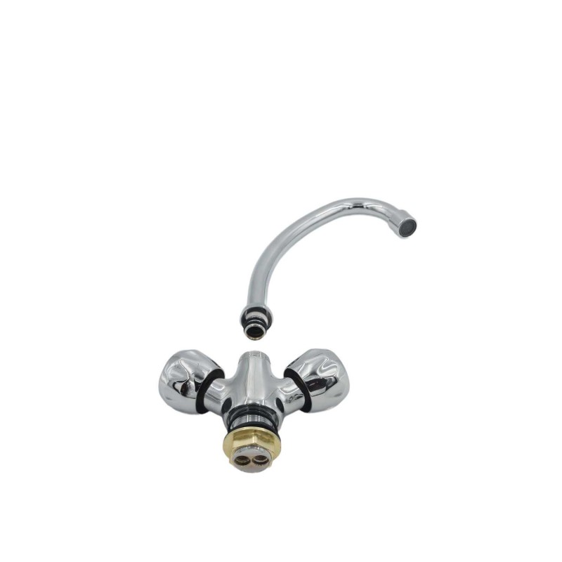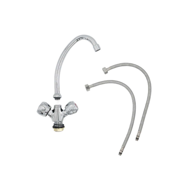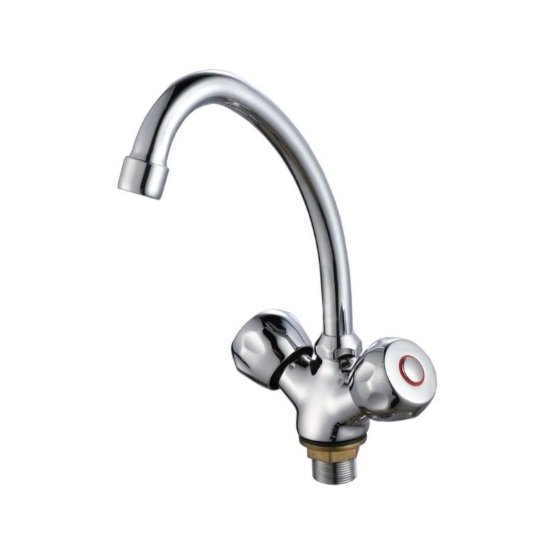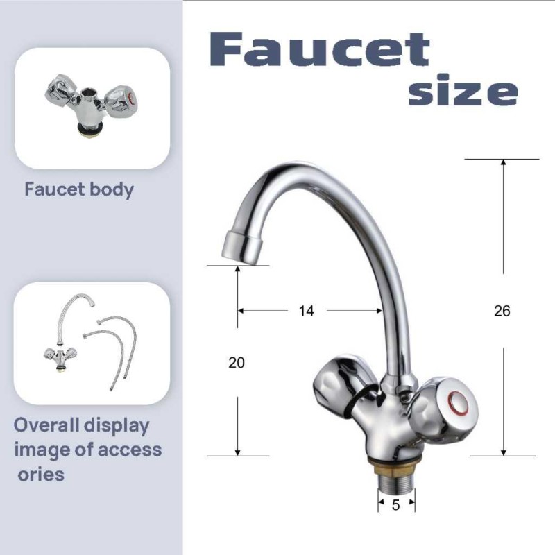 Featuring dual handles for separate hot and cold water control, it allows precise temperature adjustment and smooth water flow. The tall gooseneck spout provides ample clearance for washing dishes, filling pots, or cleaning large items. Its simple design complements any sink style while offering lasting performance and easy maintenance.