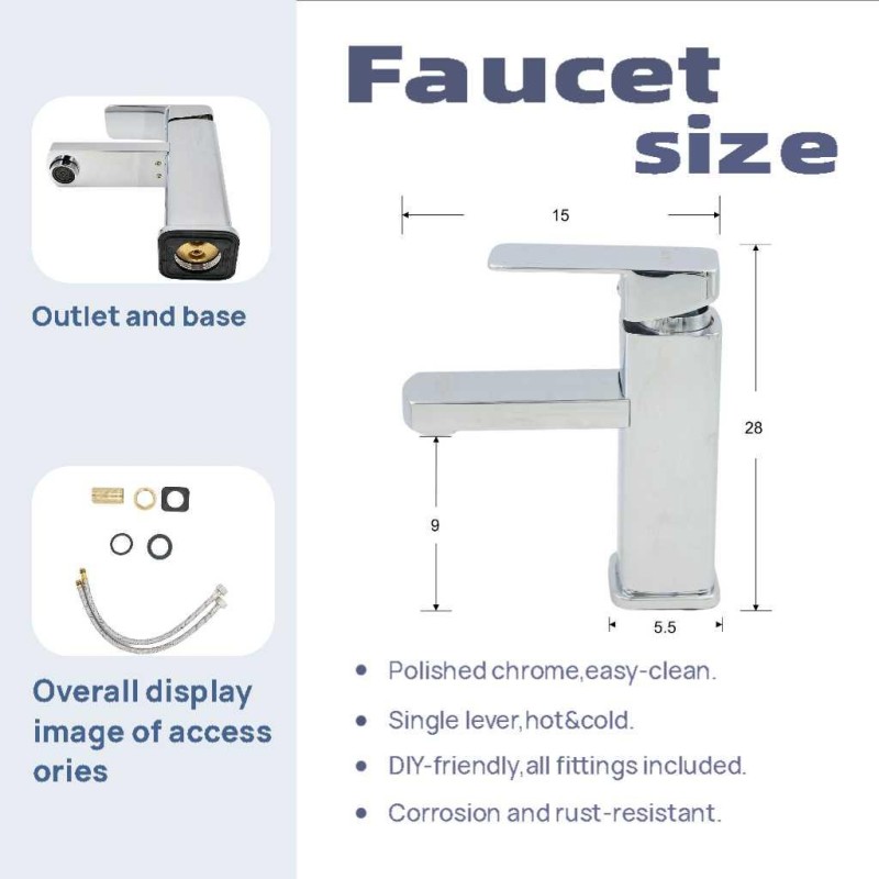 The AIYI AY407-022 Bathroom Basin Mixer Tap is the perfect blend of form and function for any modern bathroom. With its stylish chrome finish and squared edges, this single-lever tap adds a touch of sophistication to your basin while ensuring long-lasting durability.