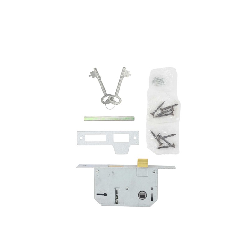 Complete Lock Set Includes lock body, strike plate, 2 handles, and 2 keys.
