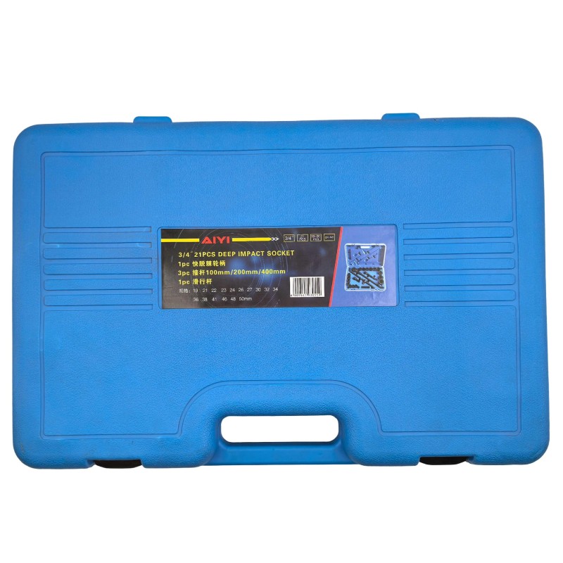 Built for strength and durability, the AIYI 21-Piece 3/4" Drive Impact Socket Set is designed for professional mechanics and heavy-duty users. Each socket is made from premium CR-MO (Chromium-Molybdenum) steel, a material specially engineered to handle high torque and repeated impact use without cracking or deforming.