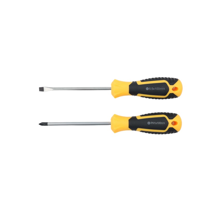 Includes 2 slotted screwdrivers, 2 Phillips screwdrivers, and 1 long nose plier