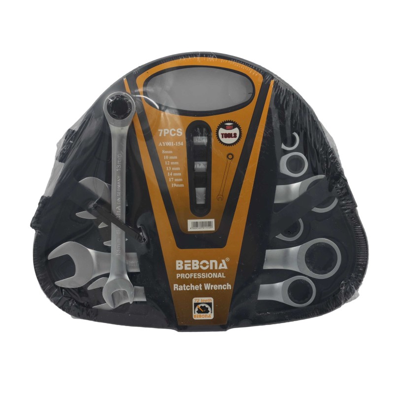 The BEBONA 7-Piece Ratchet Wrench Set is the perfect combination of strength, precision, and convenience. Designed for professionals and DIY enthusiasts alike, this set includes 7 metric-sized spanners (8mm to 19mm), each crafted from premium chrome vanadium steel for maximum durability and corrosion resistance. Featuring a 72-tooth ratcheting mechanism, these wrenches allow for smooth operation and faster tightening or loosening in tight spaces.