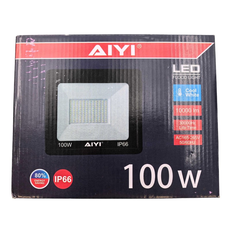Brighten wide outdoor areas with the AIYI 100 W LED Flood Light, built for powerful illumination and long-term efficiency. Fitted with 120 high-performance LEDs, it produces up to 10 000 lumens of clear cool white 6500 K light (CRI 80), making it ideal for gardens, courtyards, building facades, parking bays, signage, or security zones.