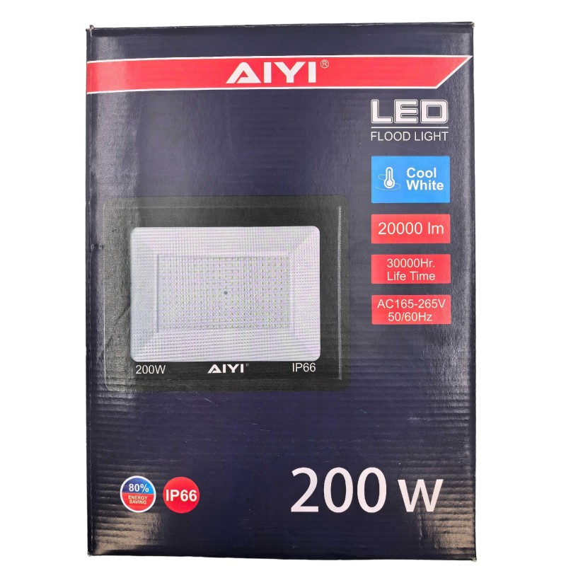 Illuminate large outdoor spaces with the AIYI 200 W LED Flood Light, engineered for outstanding brightness and low energy use. Fitted with 204 high-performance LEDs, it produces up to 20 000 lumens of crisp cool white 6500 K light (CRI 80), giving clear, uniform visibility for parking areas, sports courts, gardens, signage, warehouses, or security zones.