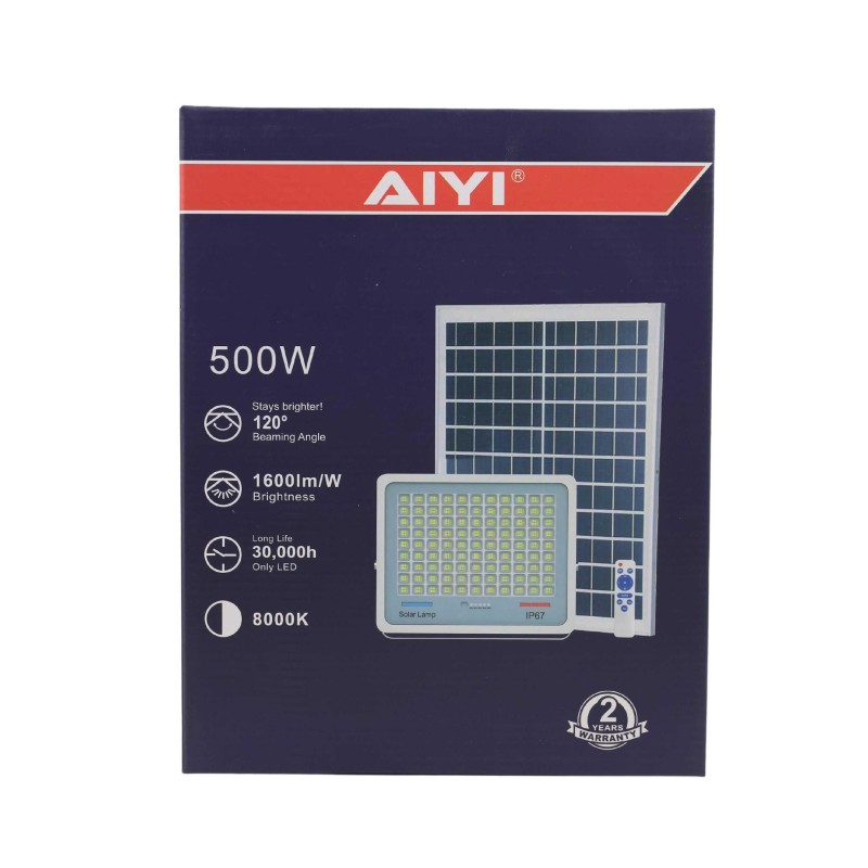 With an 8000-hour LED lifespan, A energy efficiency rating, and no wiring or power bills, the AIYI 500W floodlight is a robust, smart choice for lighting large spaces.