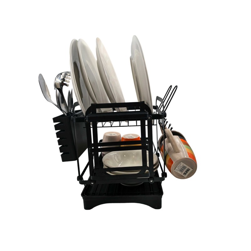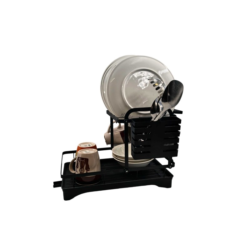 Keep your kitchen neat and organised with this 2-Tier Dish Drying Rack. Designed with durability and practicality in mind, it features a spacious dual-layer design that can easily hold plates, bowls, mugs, and utensils. The detachable cutlery holder and side hooks offer extra storage for spoons, knives, spatulas, or dish towels, while the bottom drip tray ensures your countertop stays dry and clean.