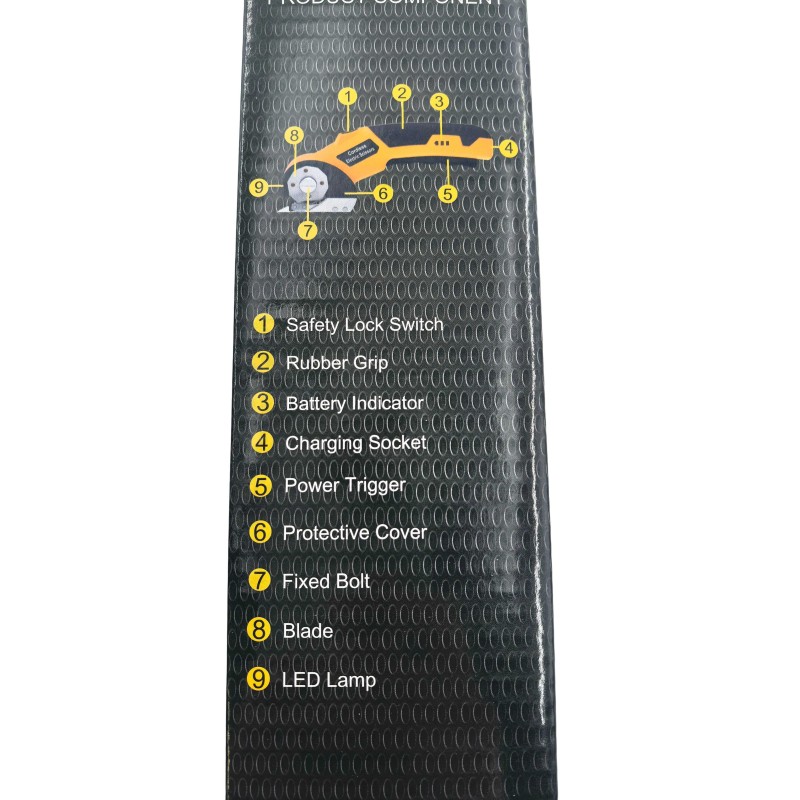 The built-in safety lock prevents accidental operation, while the LED light ensures clear visibility when working on detailed cuts. Its ergonomic rubber grip provides comfort during extended use, and the USB Type-C charging port makes recharging simple and fast.