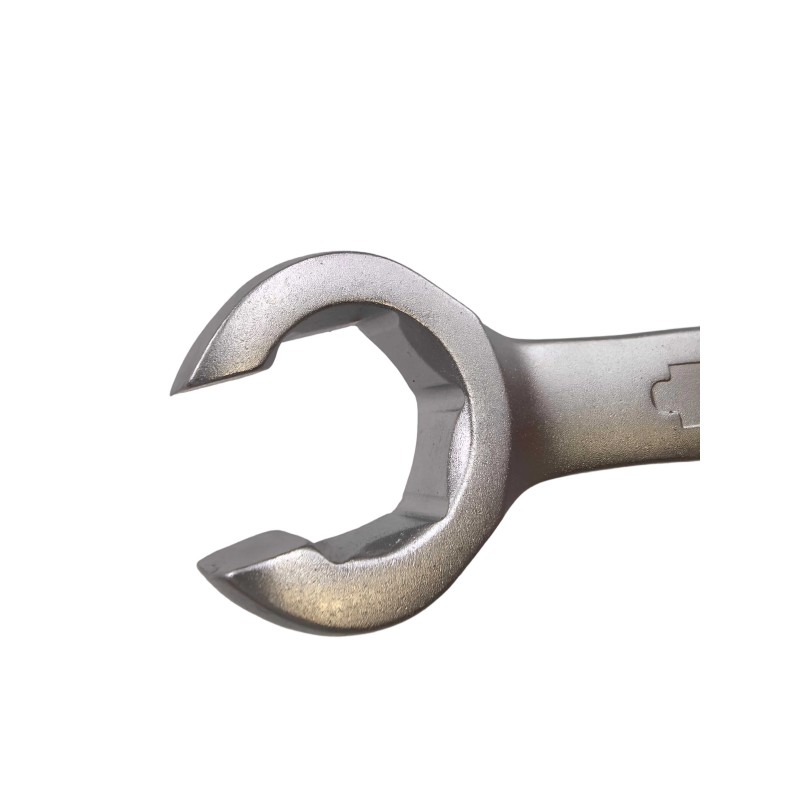 Each spanner features a double-ended design with offset flare nut jaws, ideal for gripping nuts on pipes, fuel lines, brake systems, and hydraulic fittings without slipping or rounding edges. The satin-finish surface provides a professional look while reducing glare and resisting corrosion.