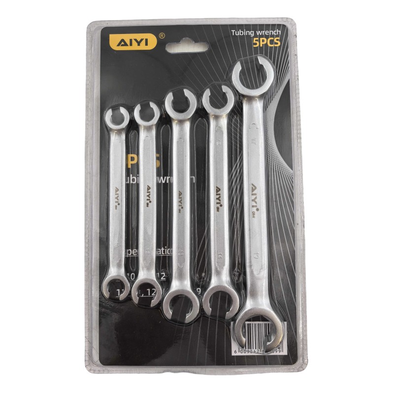 The AIYI 5-piece Flare Nut Spanner Set is designed for precision and strength, making it an essential tool kit for mechanics, plumbers, and DIY enthusiasts. Manufactured from high-quality chrome vanadium (CR-V) steel, these spanners deliver outstanding durability and resistance to wear, ensuring long-lasting performance.