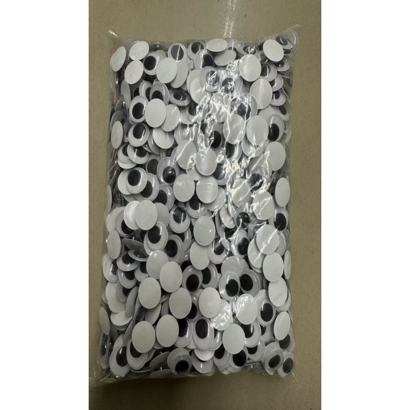 The eyes are typically made of plastic with a self-adhesive backing for easy application