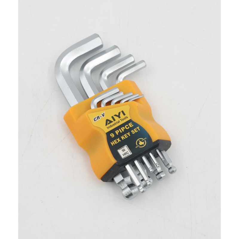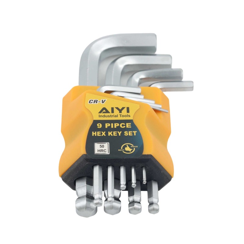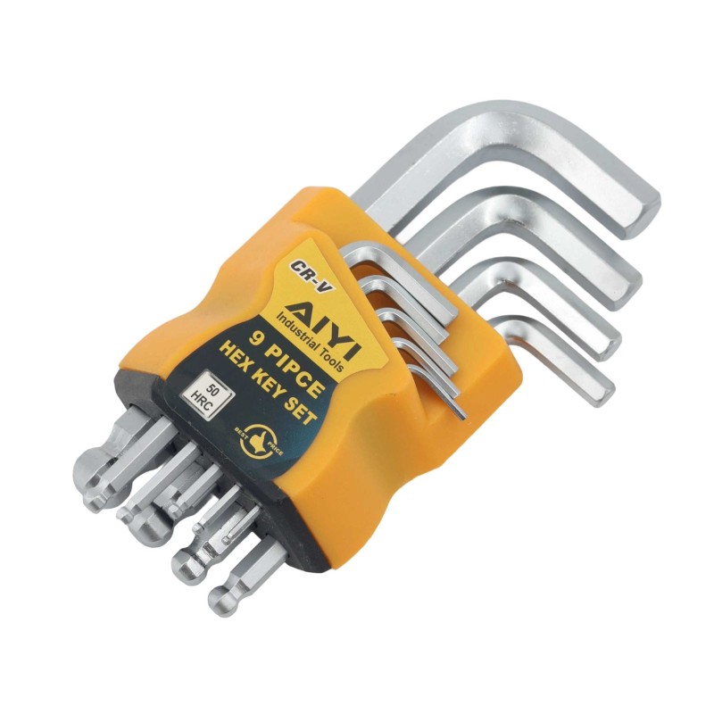 The AIYI 9-Piece Ball Arm Hex Key Set is a reliable and versatile tool set for any technician, mechanic, or DIY user. Designed for use on hex socket fasteners, this set includes nine L-shaped hex keys in metric sizes, all made from durable chrome vanadium (Cr-V) steel for strength and long-lasting performance.