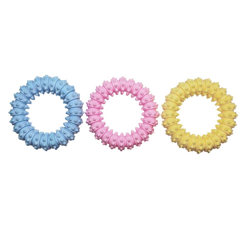 The items are ring-shaped toys designed for pets to chew on.
