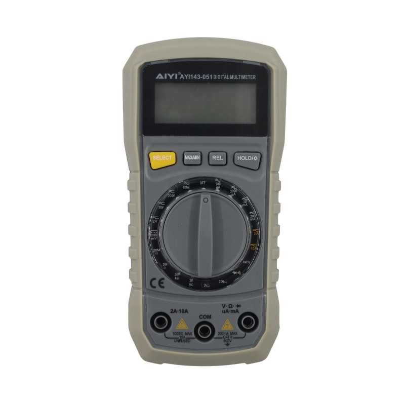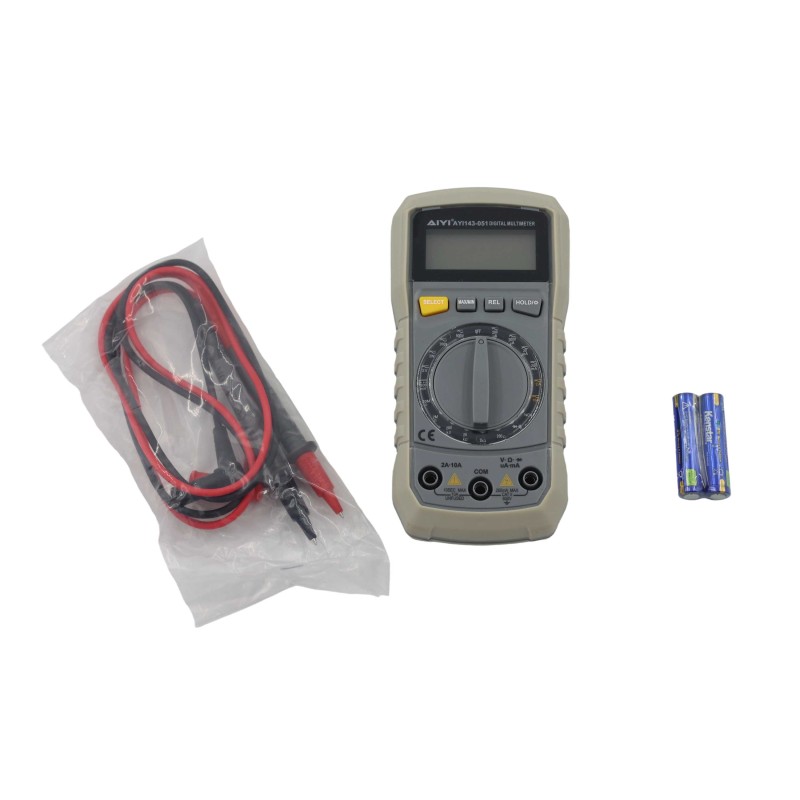 The AIYI AY143-051 digital multimeter is a reliable, user-friendly device designed for measuring a wide range of electrical values. Featuring auto-ranging capabilities, non-contact voltage (NCV) detection, and essential measurement functions, it's perfect for electricians, technicians, and home users alike. With a clear LCD display and multiple safety features, its ideal for daily diagnostic tasks.