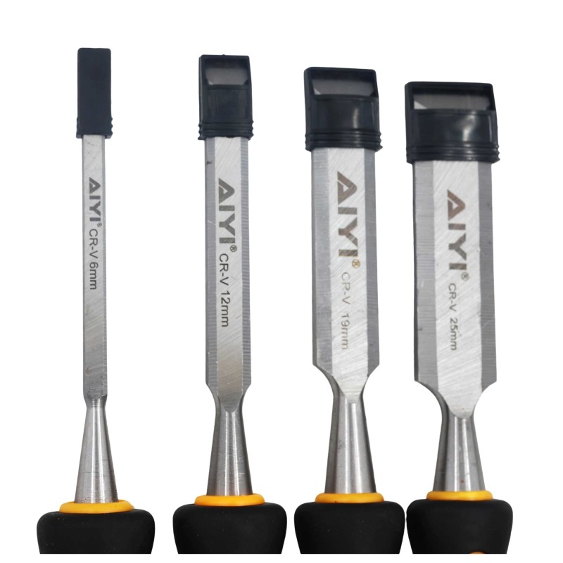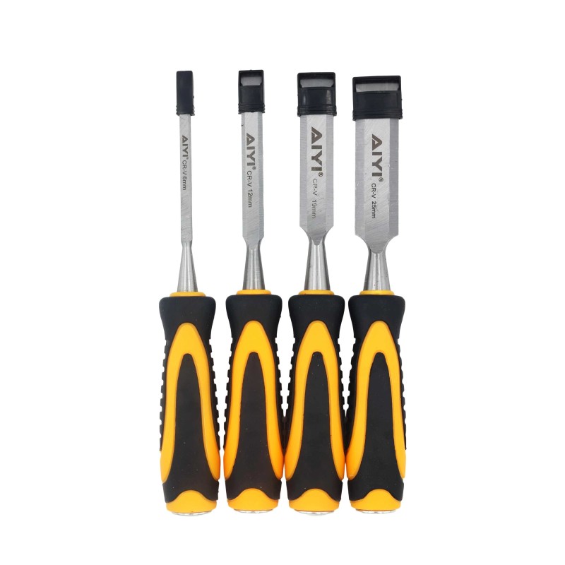 The AIYI 4-Piece Wood Chisel Set (AY001-139) is designed for precision, strength, and comfort, making it ideal for woodworking professionals and DIY enthusiasts alike. Each chisel is crafted from high-quality chrome vanadium (CR-V) steel, ensuring long-lasting sharpness and excellent resistance to wear and corrosion. The blades are pre-sharpened for immediate use, providing clean and smooth cuts on both soft and hardwood surfaces.