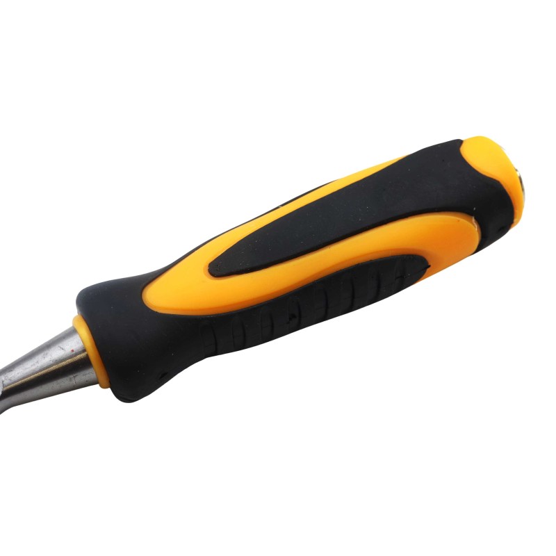 The chisels feature dual-material ergonomic handles with a non-slip grip for enhanced control and comfort, even during extended use. The robust design ensures durability, while the protective caps on each chisel keep the blades safe and ready for use. Whether you are carving, shaping, or creating fine joinery, this set provides all the essential sizes to tackle a variety of woodworking tasks with ease.