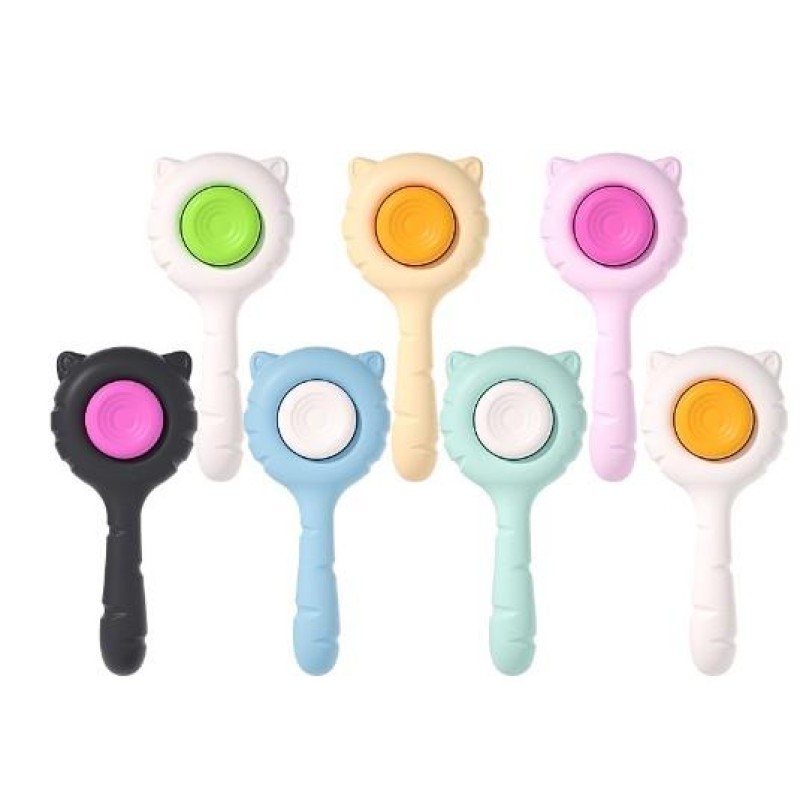 pet grooming brush, likely a self-cleaning slicker brush. These tools are designed for general pet care and shedding control.