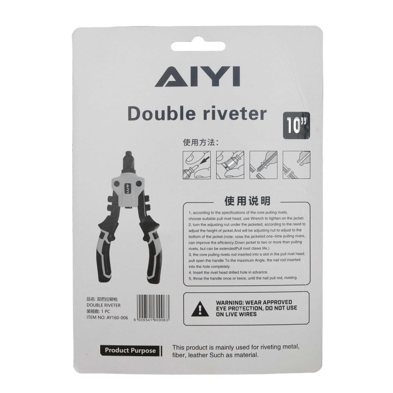 The AIYI 10-Inch Double Hand Riveter is engineered for strength, durability, and ease of use. Featuring a dual-handle mechanism, this heavy-duty rivet gun delivers exceptional leverage and precision, making it ideal for both professional tradesmen and DIY enthusiasts. Its ergonomic, non-slip handles provide comfortable grip during extended use, while the robust construction ensures long-lasting performance.