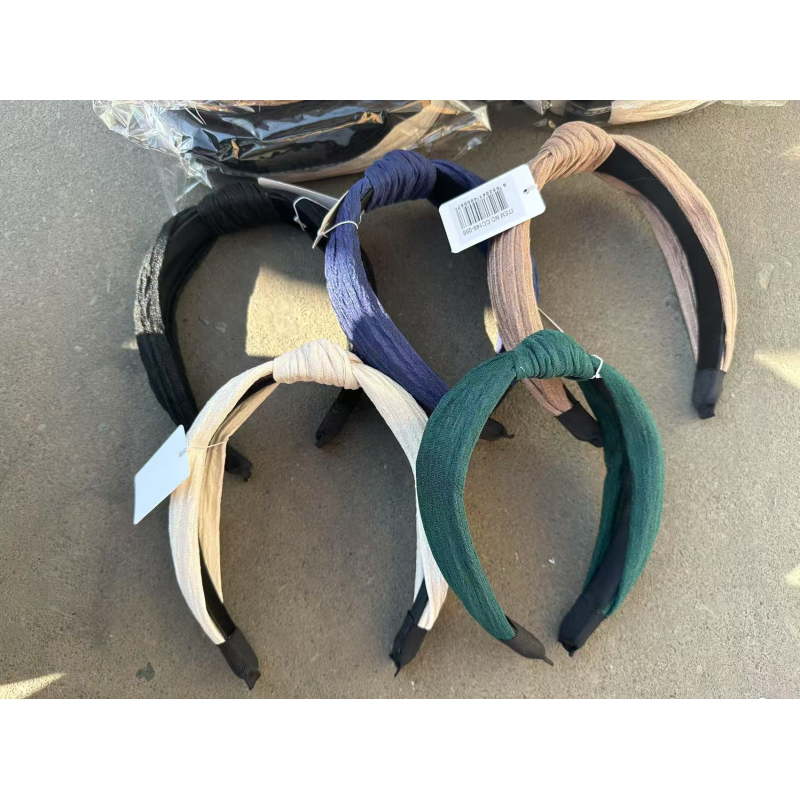 collection of assorted MINISO knotted headbands in various colors and materials.