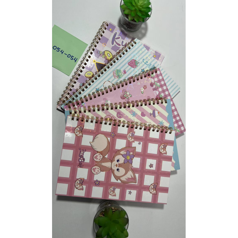 spiral-bound notebooks featuring cute, "kawaii" style designs.