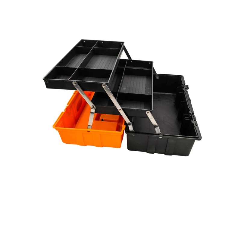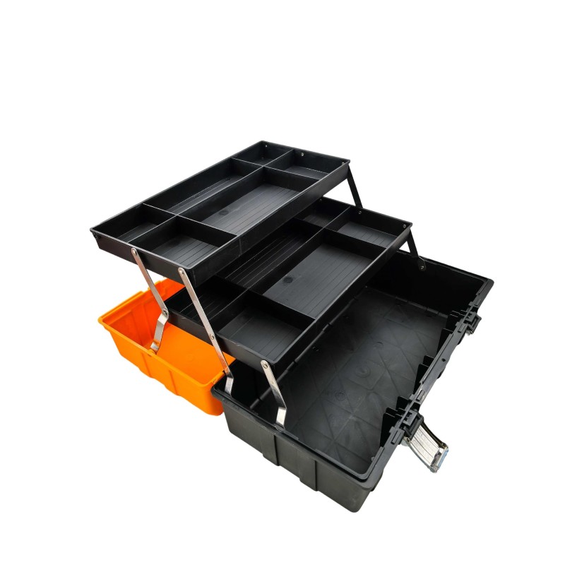 Made from tough, impact-resistant plastic, this toolbox is designed to withstand heavy use at home, in workshops, or on job sites. The reinforced metal latches ensure secure closure, and the bright orange lid improves visibility so you can spot it quickly in a busy workspace.