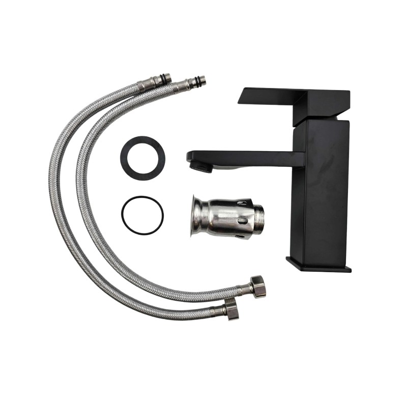 The single lever handle makes it easy to adjust both temperature and flow, while the included braided hoses and fittings allow for a hassle-free installation. Its universal deck-mounted design is compatible with most standard basins, making it a practical choice for renovations or new installations.
