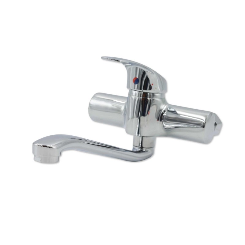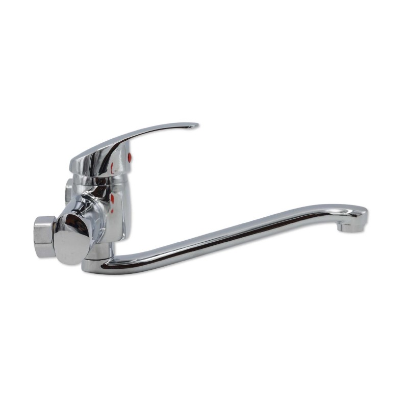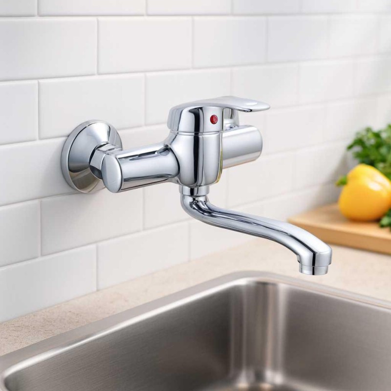 Its single-lever handle provides smooth control over both water temperature and flow, and the swivel spout offers wide coverage perfect for double sinks or larger washing areas. The mixers wall-mount design saves counter space and makes cleaning around the sink easier, ideal for both modern and traditional kitchens.