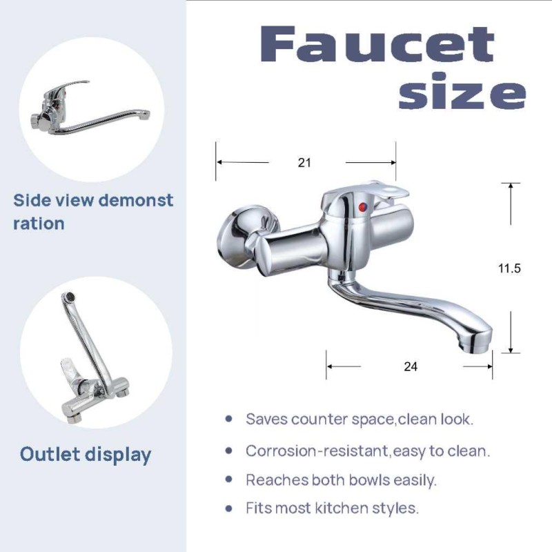 The AIYI Wall-Mounted Kitchen Sink Mixer Tap delivers classic simplicity and long-lasting performance for everyday use. With a polished chrome finish, it resists corrosion and tarnish while maintaining a bright, mirror-like shine.