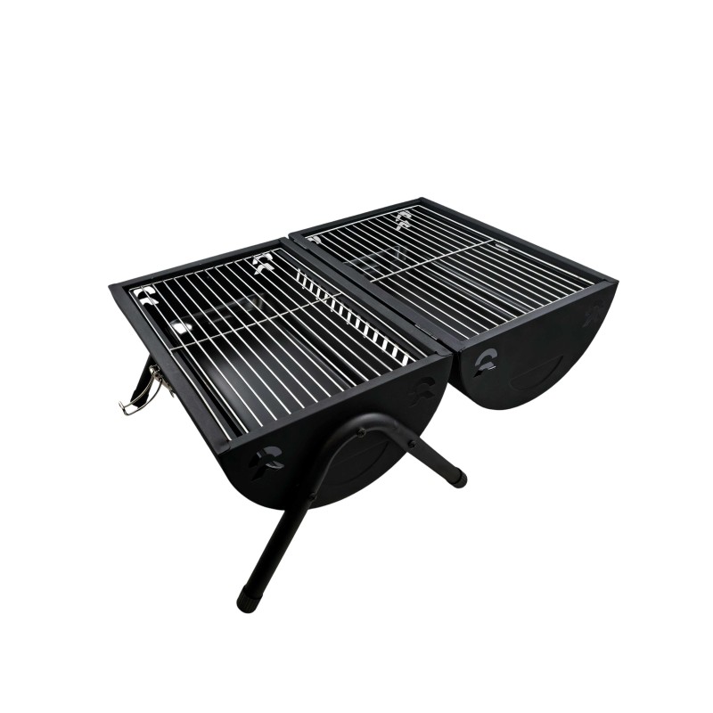 Enjoy the authentic braai experience anywhere with this portable charcoal barrel grill. Measuring 38 26 33 cm when assembled, it is compact enough for easy transport yet spacious enough to cook for family and friends. The sturdy barrel design opens up to reveal dual chrome-plated cooking grates, offering ample space to grill meat, vegetables or seafood.