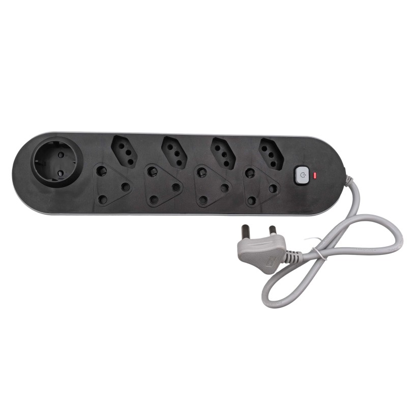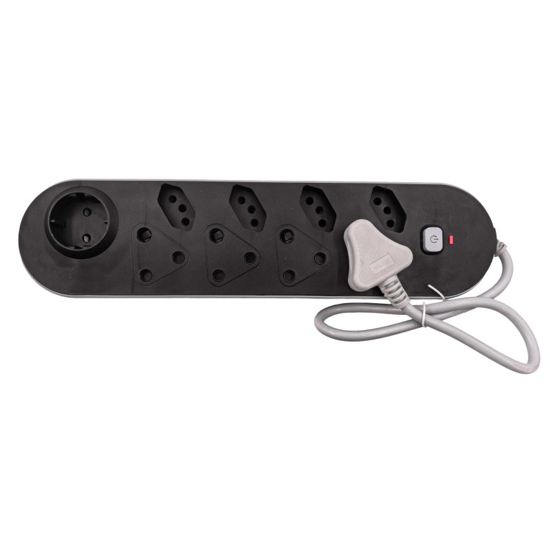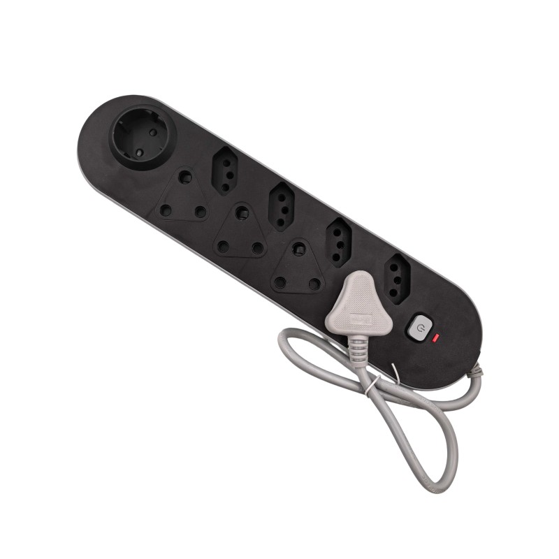 This 9-Way Multi-Plug Adaptor is designed for maximum versatility, supporting both traditional and modern South African plugs. It includes 4 SA 3-pin outlets (Type M, large round pin), 4 SA new standard 3-pin outlets (SANS 164-2 compact round pin), and 1 Schuko/Euro socket for European round-pin plugs.
