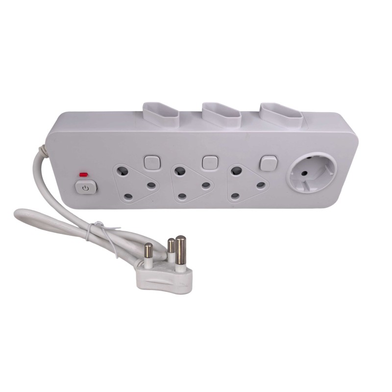 Keep your electronics organised and safe with this 7-way multi-plug power extension. Designed for South African households and offices, this extension provides multiple connection options in a single, compact unit. It includes 3 standard 3-pin sockets, 1 Schuko socket, and 3 top-mounted two-pin sockets, giving you flexibility to power different appliances at once.