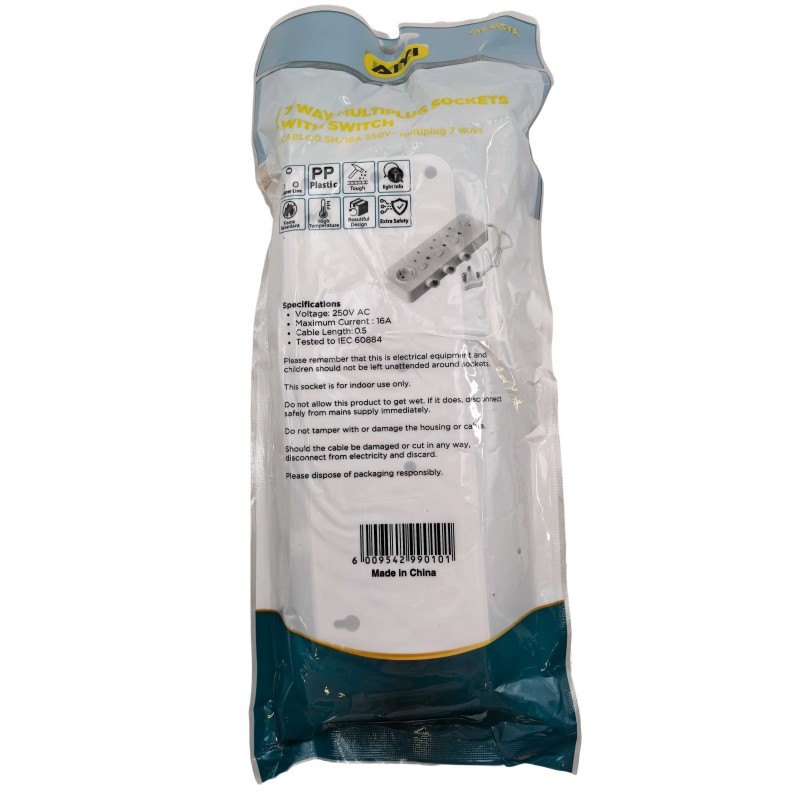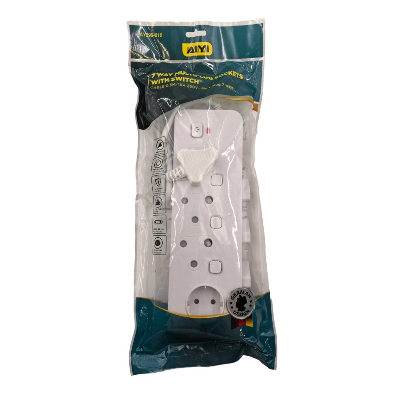 AiYi 7way multiplug sockets with switch 16A 250V AY299-010