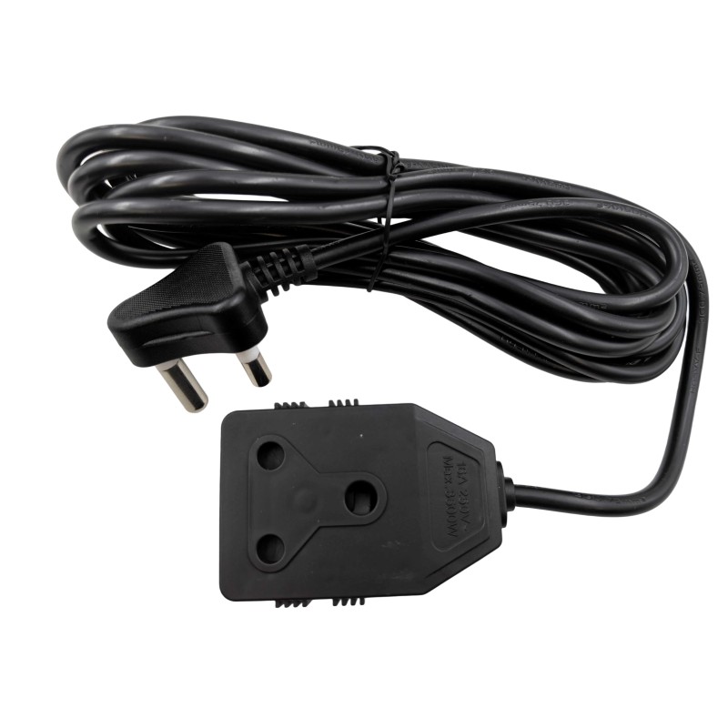 This 5m extension cord comes with a convenient dual-sided 3-pin adapter, allowing you to power multiple devices at the same time. Designed for South African 3-pin plugs, it ensures safe and reliable power distribution across longer distances.