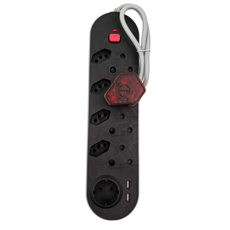 Keep your electronics safe and powered with this Surge Protected Multi-Plug Power Strip. Designed for modern households and offices, this unit features nine versatile sockets that accept multiple plug types, plus dual USB charging ports for mobile devices. The built-in surge protection helps guard against voltage spikes, ensuring your appliances, computers, and accessories are safe. With a maximum protected load of up to 3680W, it provides reliable protection for up to 2 devices at a time.